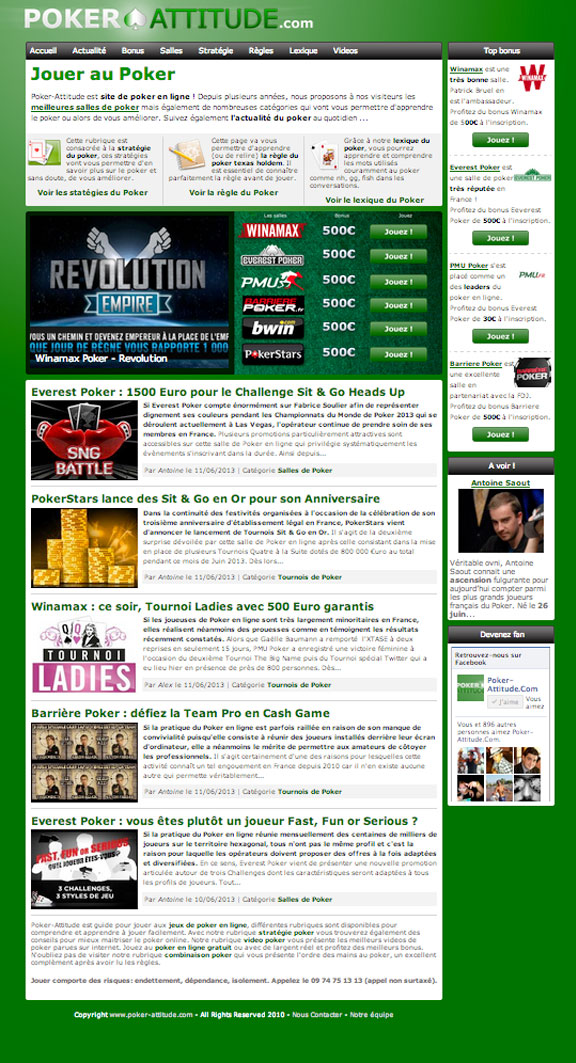 Le propriétaire de la société MONKAWEB que je connais personnelement, m’a sollicité pour la création de son site car j’avais une bonne connaissance du poker en ligne et un savoir faire en codage de site internet.